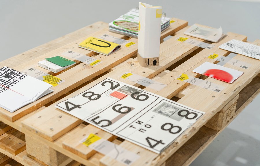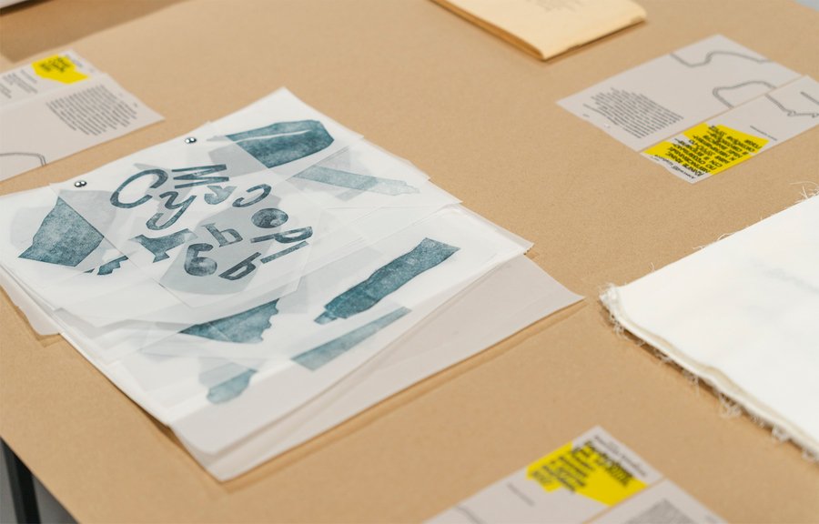 The exhibit is based on a collage of miscellaneous invoice elements. This makes it possible to create a sense of slices scattered during manual work, of analogity, of multilayerity.