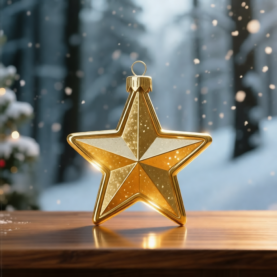 промты: Draw 5 Christmas tree decorations and place them next to each other: a snowflake, a deer, Santa Claus, a snowman, and a star
