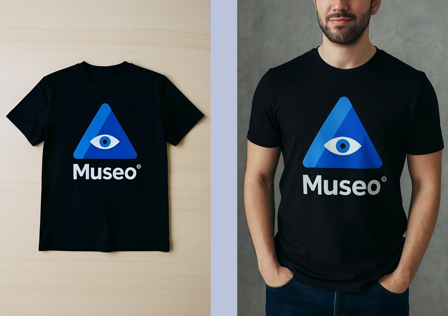 Запрос Qwen: Generate an interface for an app with online tours for a museum visit featuring geometric shapes (triangle, square, circle) in minimalism style. The auditory of the app is teenagers from 16-18 years. Brand name is Museo.
