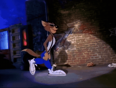 MC Skat Kat настоящий пример уличного танцора: дерзкий, пластичный, слегка непредсказуемый. Визуально он сочетает элементы хип-хоп-субкультуры конца 80-х. Он не милый, не пушистый. Скорее он городской, уличный, слегка такой хулиган. В его образе четко отражается социально-культурный феномен того времени.