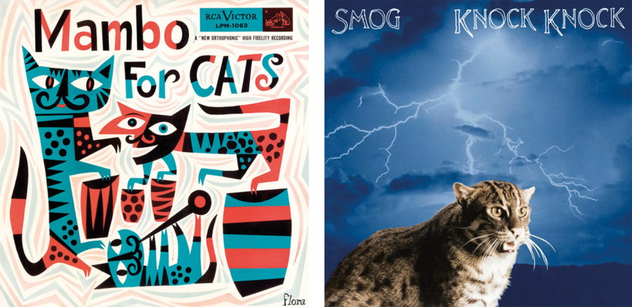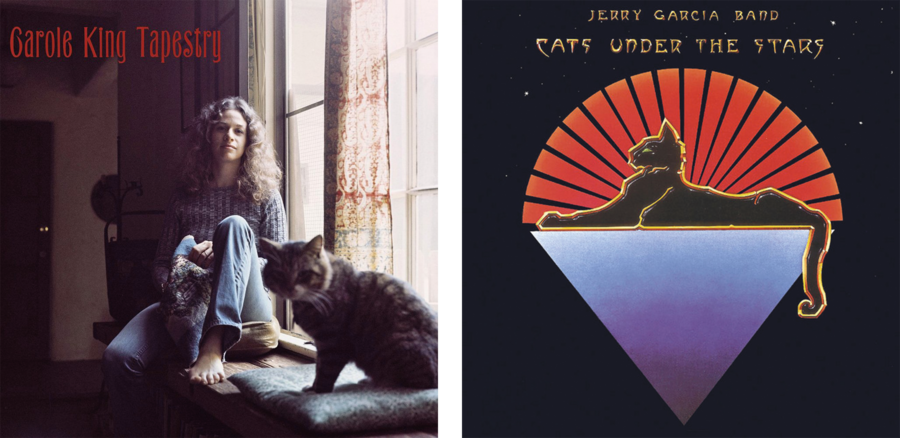 Обложки: Mambo for Cats — Various Artists (обложка Jim Flora), 1955, Knock Knock — Smog, 1999, Tapestry — Carole King, 1971, Cats Under the Stars — Jerry Garcia Band, 1978