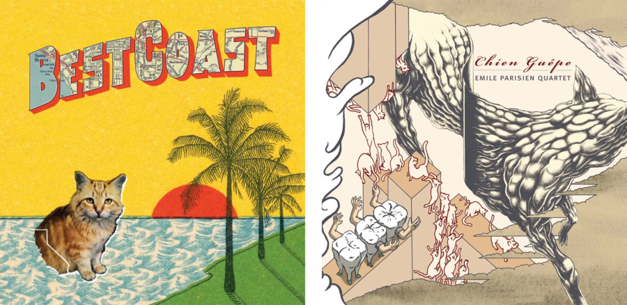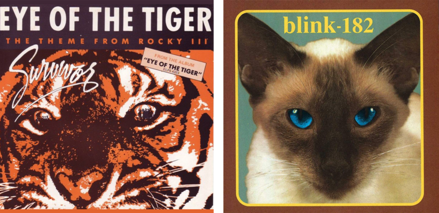 Обложки: Eye of the Tiger — Survivor, 1982 Cheshire Cat — Blink-182, 1995, Crazy for You — Best Coast, 2010, Chien Guêpe — Emile Parisien Quartet, 2012