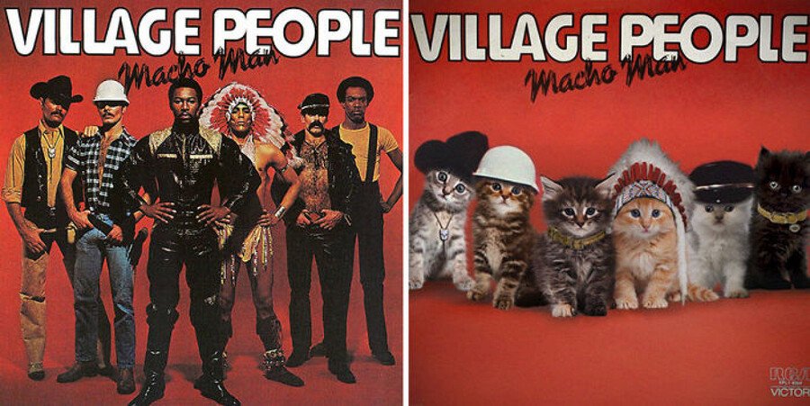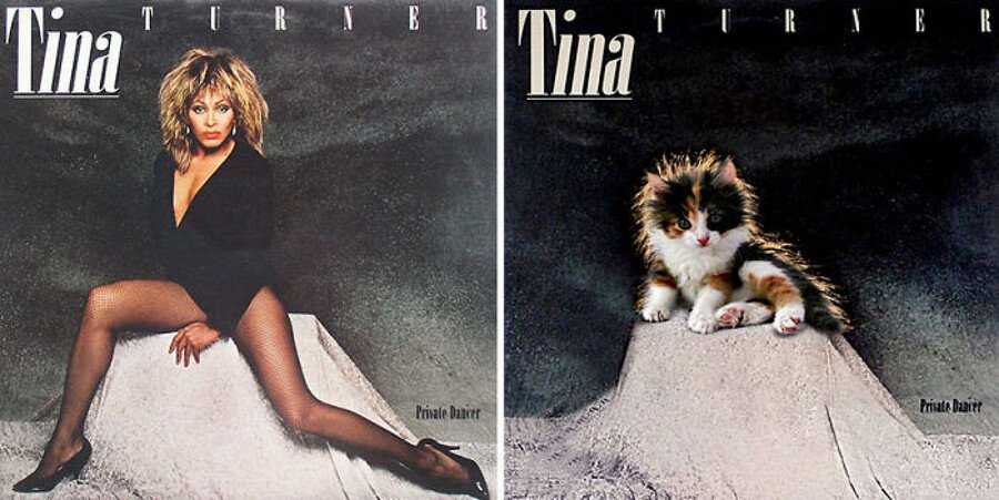 Говоря о влиянии кошачьих не только в интернете и в сознании общественного мнения, важно так же исследовать работы художника Алфре Мартини, который вдохновляется котами и создает свою интерпретацию на уже изданные музыкальные обложки.
