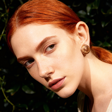 Тоннели для растянутых мочек ушей выполнены в форме небольших белых грибов с округлыми шляпками. Форма украшения проходит сквозь мочку, соединяя вид шляпки снаружи и ножку с обратной стороны. Гриб становится не декоративным мотивом, а самой конструкцией украшения, встроенной в тело.