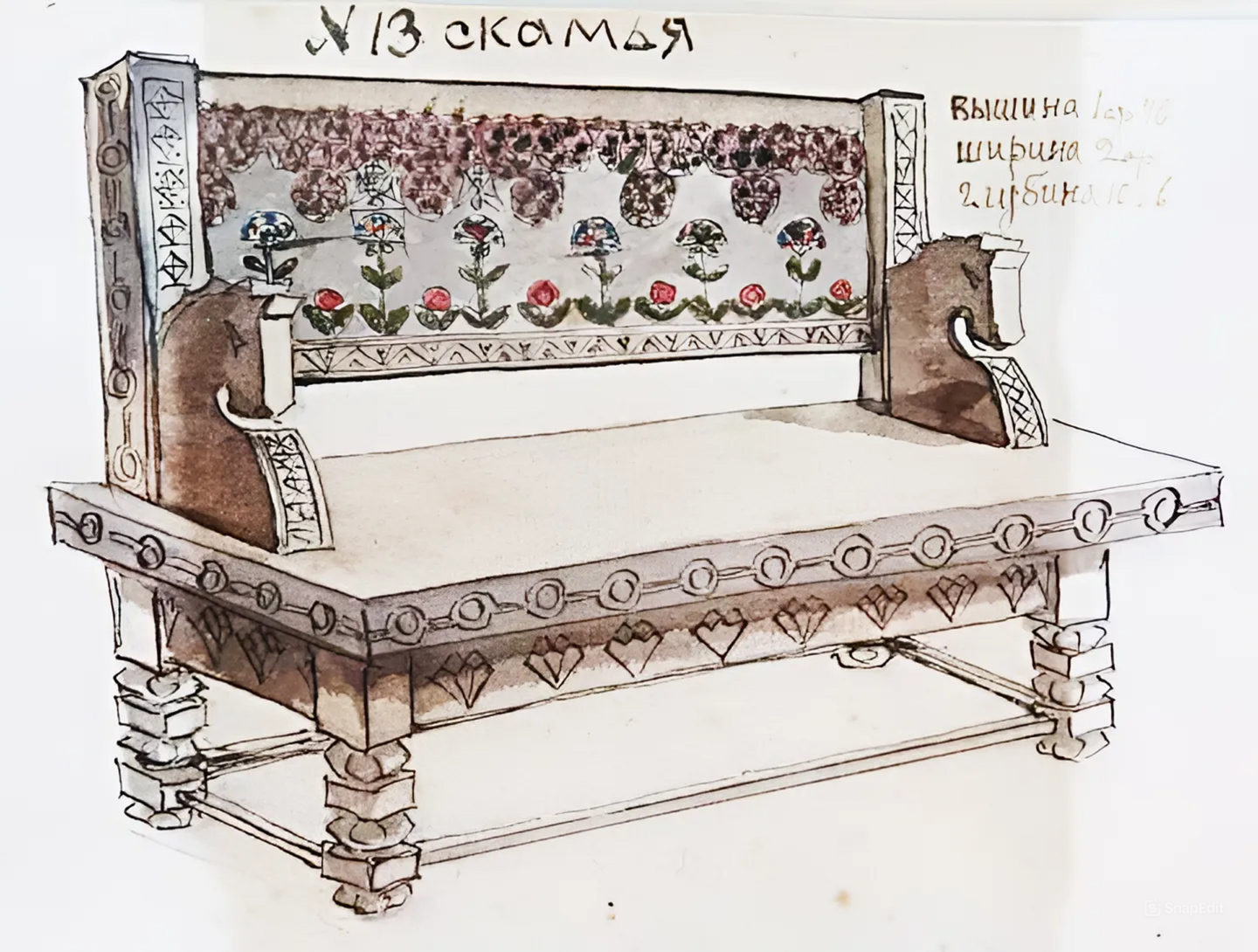 Скамья. Е. Д. Поленова (конец XIX века): https://damuseum.ru/catalog/skamya/