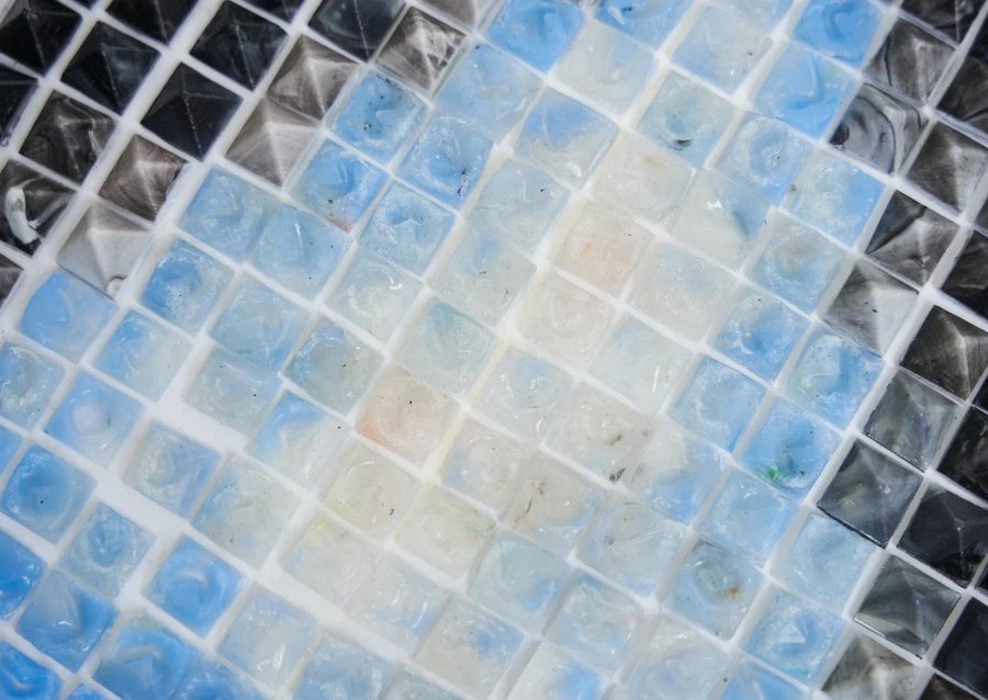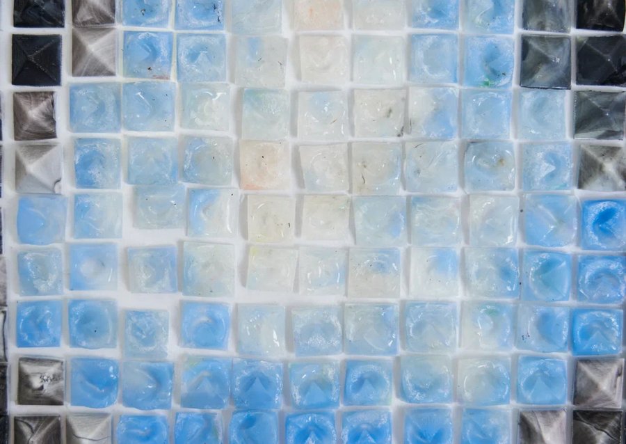 Пробовали по-разному, самый выгодный вариант — шредером измельчить пластик до крошки, затем сплавить под термопрессом в плоский лист, а его переплавить в форму под детали для мозаики.