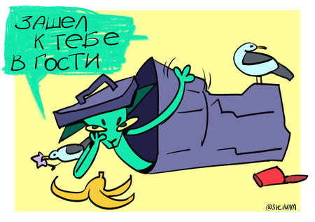 Серия иллюстраций посвящена токсичному котику, что готов сказать всё что думает с довольным видом. Основным приёмом открыток является несоответствие изображаемого и подписей — несмотря на веселый вид, персонаж вам определенно не рад.