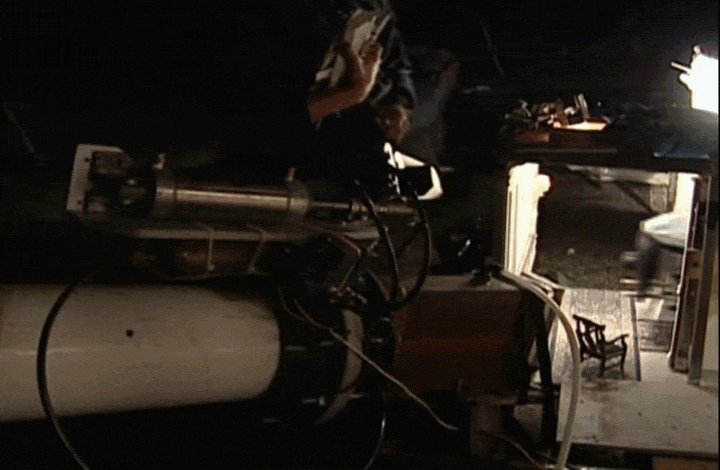 Взрыв модели «Чёрной Жемчужины», супервайзер физических моделей — Чарли Бейли, технический специалист по спецэффектам — Джефф Херон