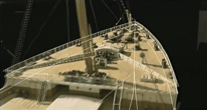 «Титаник», сцена погружения части корабля под воду