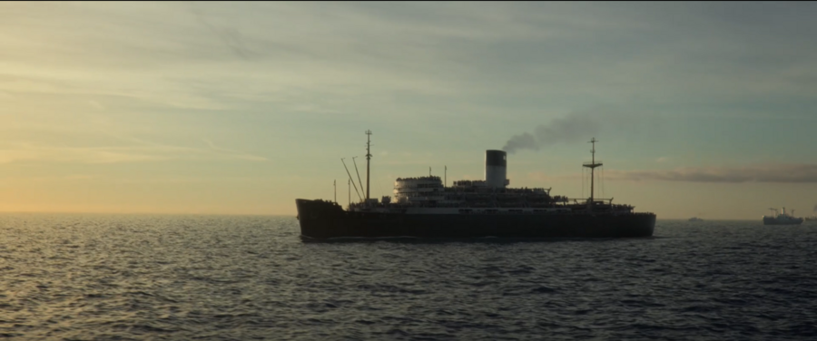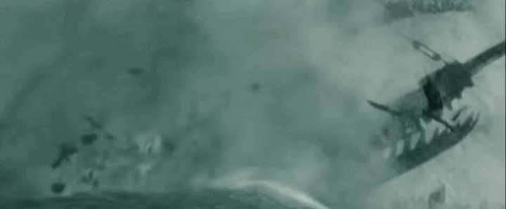 Подобные друг-другу кадры из фильма, где нос корабля разрезает волны