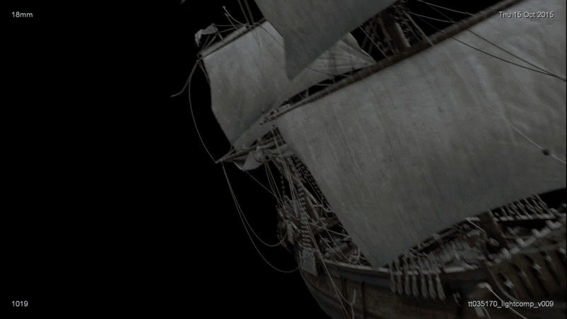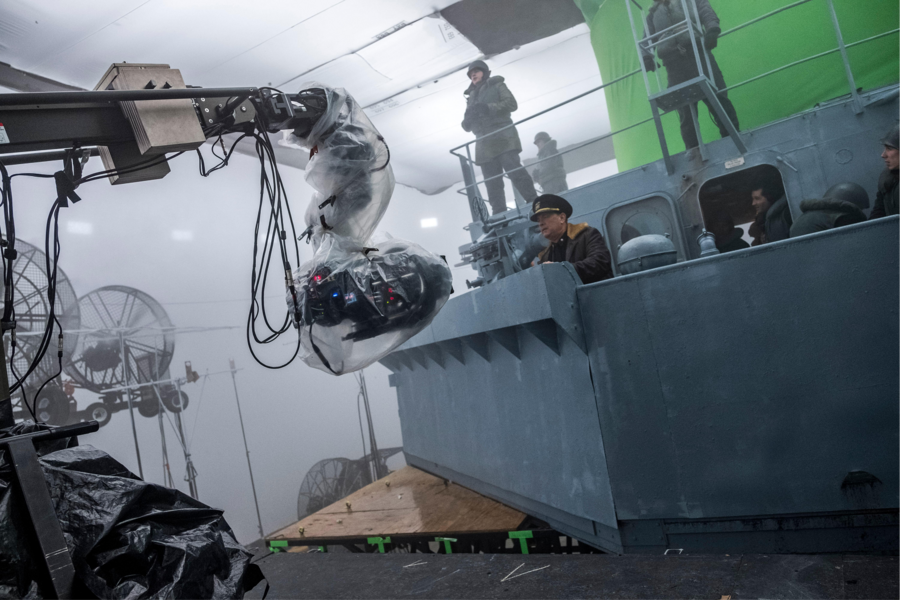 В итоге фильм был собран практически из двух пространств: реального и виртуального. Сложность такого процесса заключалась в том, что в каком-то смысле работа шла в режиме реального времени, где многие сцены приходилось собирать в виртуальном пространстве с нуля и по факту. Но при этом виртуальная среда сильно помогла автоматизировать процесс. Например, в фильме есть много подобных друг-другу кадров с видом на нос корабля, рассекающего волны. Для начала был создан только один подобный кадр, и после утверждения его режиссёром, остальные делались по образцу, чтобы снова не проходить все этапы согласования.