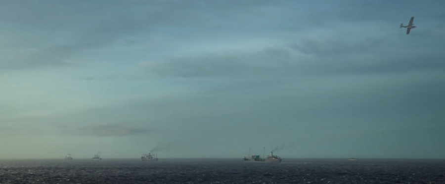 Процесс съёмки следа от корабля и внедрение в фильм (финальный результат)