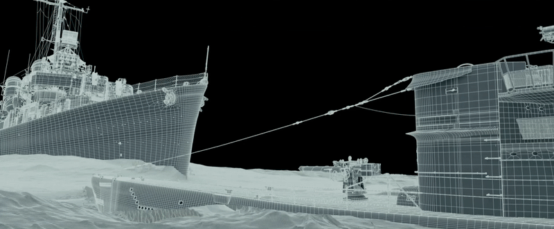 Поэтому команде DNEG было поручено воссоздать в 3D все модели используемых кораблей и подводных лодок. Благодаря собранной библиотеке изображений исторических кораблей, которую Аарон Шнайдер создал при подготовке к съёмкам, удалось воссоздать максимально точные, правдоподобные и высоко текстурированные 3D-модели методом фотограмметрии. Более того, приходилось создавать несколько версий одних и тех же моделей или элементов судов, потому что по ходу фильма внешний вид кораблей менялись из-за повреждений в боях.