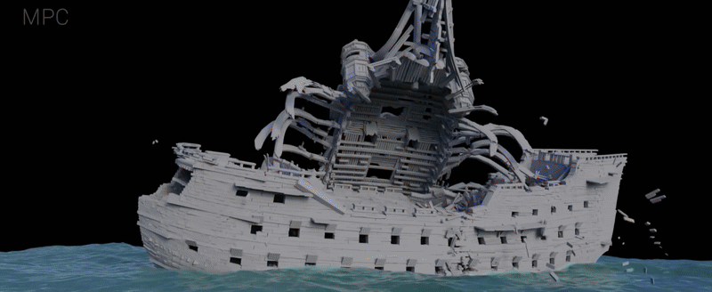 Процесс визуализации взаимодействия волн и корабля, DNEG