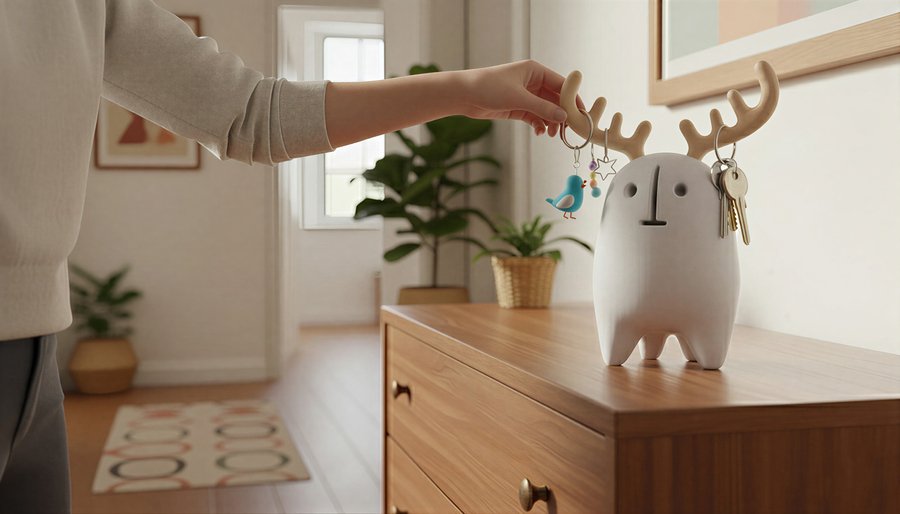Гордый Tauras, с ветвистыми рогами и хитрым взглядом, правит царством ключей. На его рогах хранятся ключи, брелоки и крошечные талисманы. Он вертит ими в такт ветру, напоминая о запертых дверях и приключениях.