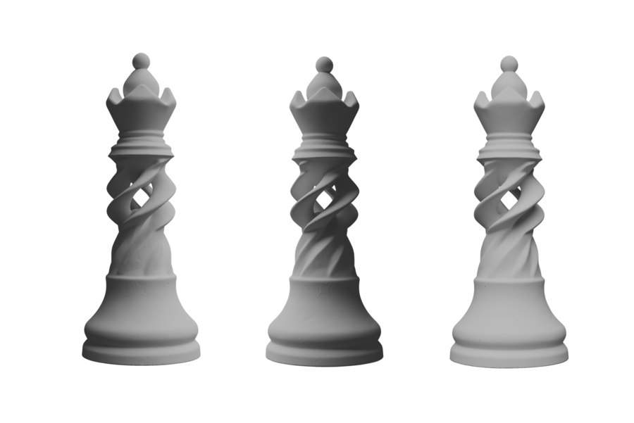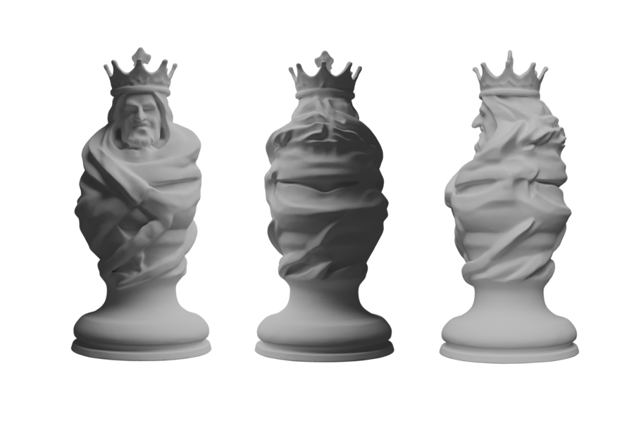Проект представляет собой шахматный набор, где традиционное противопоставление белого и черного цвета развито до противопоставления двух принципиально разных состояний формы.
