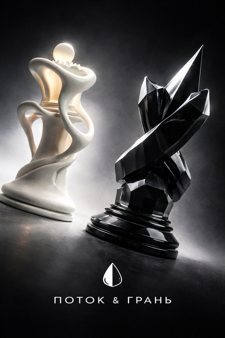 Формулировка темы: Определение ключевой идеи — создание шахматного набора как визуальной антитезы «Поток vs Грань».