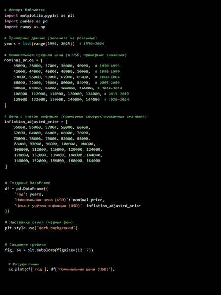 Линия показывает динамику средней цены по годам. Вторая линия — скорректированная на инфляцию стоимость. Позволяет увидеть реальный рост ценовой планки бренда и моменты резких изменений (например, выход новой платформы или премиум-версии).