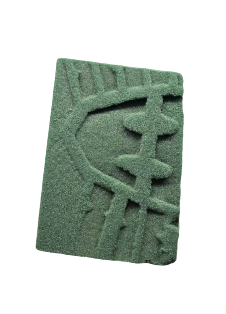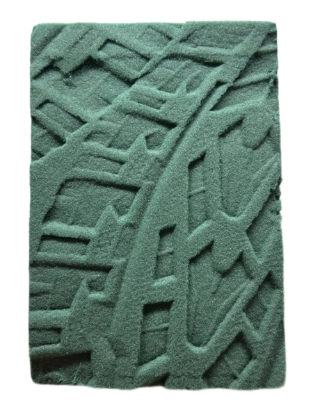 «След» Каждый шаг человека оставляет след на земле, точно так же, как цивилизация оставляет свой отпечаток на планете. Наступая на флористическую губку, я фиксирую узоры подошв, которые повторяют геометрию городов и архитектурных сетей. Проект превращает личный шаг в символ коллективного присутствия человечества, показывая, как наши действия оставляют след в мире, подобно тому, как города и строения формируют ландшафт Земли.