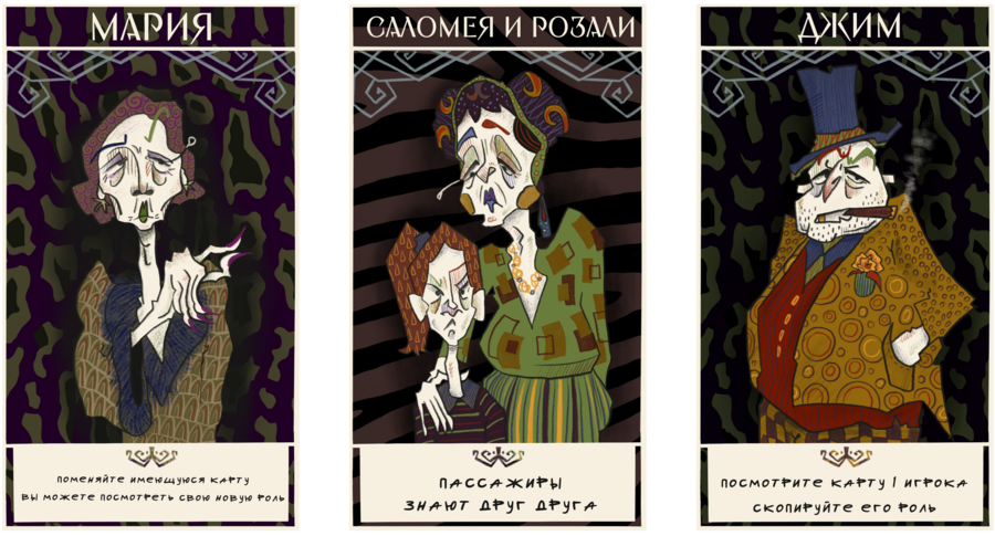 2 локация — игроки получают случайные карты ролей. Случайные карты багажа уже разложены в каютах.