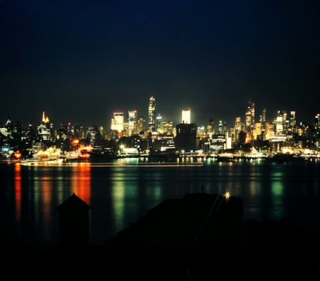 Нью-Йорк днём и ночью с электрическим освещением.
