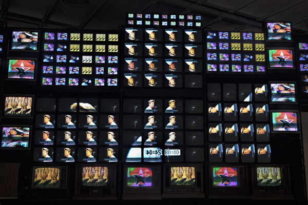Грохочущая видеостена из неоновых трубок и мониторов с телесюжетами превращается в метафору Америки конца XX века — страны, ассоциирующейся с постоянным информационным шумом. Она становится миниатюрой США, вступивших в эру ускоренного обмена данными и бурного технологического роста.