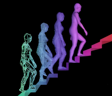 1. Ребекка Аллен. «Женщина, поднимающаяся по лестнице». 1981. 2. Нам Джун Пайк. «Конец века II». 1989.