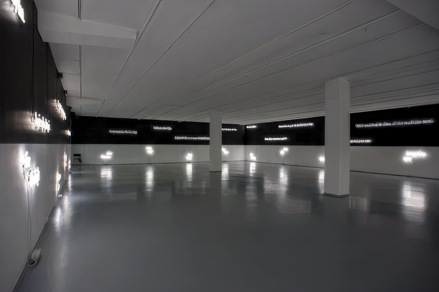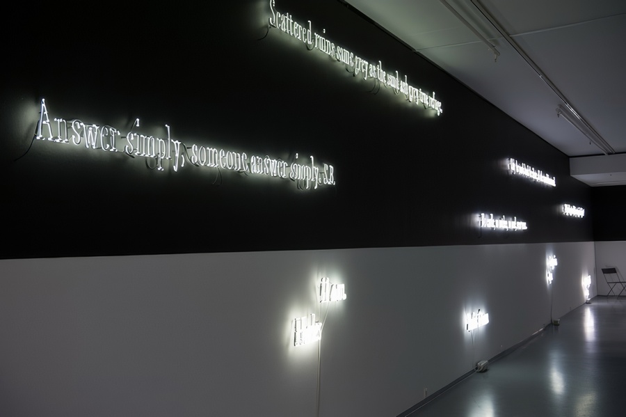 Джозеф Кошут. «Без названия». 1990-е. Неоновая инсталляция, посвящённая Джойсу и Беккету. В составе выставки «Амнезия». 2007.