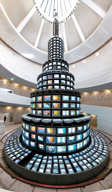 Медиаартисты 1960–1990-х годов создали визуальный язык, который остаётся актуальным и узнаваемым. Башня из экранов, как символ веры в прогресс и глобальную связанность, появилась ещё в конце XX века и воспринималась как технологическая победа.