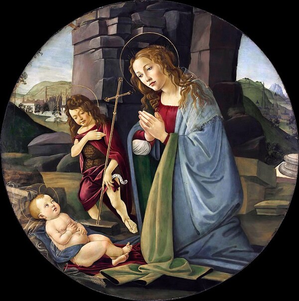 Сандро Боттичелли / Мадонна и юный Иоанн Креститель, поклоняющиеся Младенцу Христу / 1490