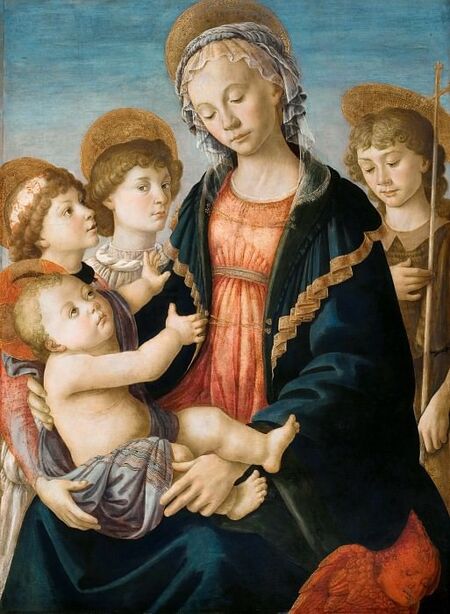Сандро Боттичелли / Мадонна с младенцем, двумя ангелами и юным Иоанном Крестителем / 1470