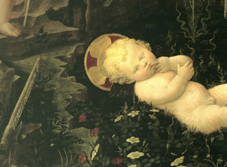 Сандро Боттичелли/ Мадонна с Младенцем и Иоанном Крестителем / 1468 / Фрагмент