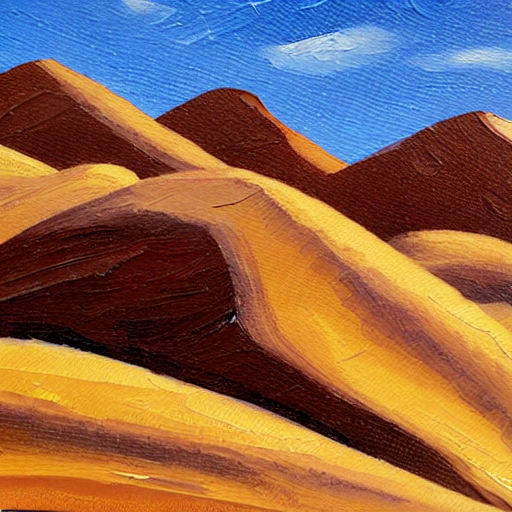 LoRA уверенно передала структуру песчаной поверхности — мягкие гребни дюн, зернистость и контраст светотени. Цветовая палитра стабильно уходит в тёплые охристые и золотистые оттенки, иногда с лёгким пурпурным свечением на закатах. В ряде генераций появляется эффект тепловой дымки или рассеянного воздуха — то есть нейросеть научилась «читать» атмосферу пустыни, а не просто форму. Визуальные вариации: От минималистичных сцен с пустым горизонтом до многоплановых композиций с караванами. Различные состояния освещения — утро, полдень, вечер, ночь. Разница в стиле: реализм ↔ живописность (зависит от промпта).