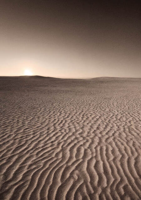 Я выбрал тему пустыни, потому что она максимально удалена от избыточности современного визуального мира. В пустыне нет ничего лишнего — только свет, песок и воздух. Хотелось проверить, способна ли нейросеть уловить это ощущение тишины и плотности пространства, где минимальные формы порождают максимальное чувство присутствия.