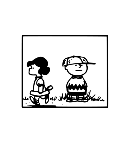 Другой важный композиционный жест — дистанция между персонажами. Шульц неоднократно показывает героев, стоящих на разных концах панели: они говорят друг с другом, но пустота между ними подчёркивает эмоциональную разобщённость. Эта дистанция читается как недосказанность диалога и пауза, которая разделяет их. Даже в сценах комического взаимодействия, например между Люси и Чарли Брауном, композиция часто сохраняет разрыв, словно герои существуют в собственных микромирах, соприкасающихся лишь на мгновение.