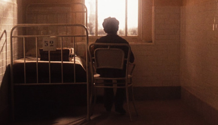 В этих сценах отсутствие окна лишает изображение перспективы: кадр теряет глубину, создавая эффект замкнутого и давящего пространства, где герой зажат стенами. Отсутствие перспективы вовне визуально закрепляет отсутствие перспективы в сюжетном и экзистенциальном смысле.