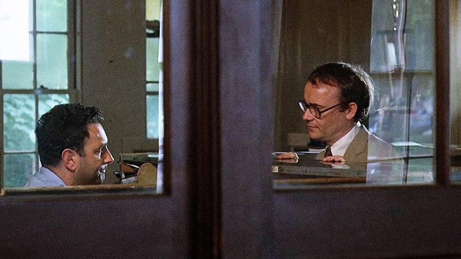 В первом разделе окно рассматривается как граница, задающая режим пространственной дистанции. Подпункт 1.1 «Разделение персонажей» объединяет сцены, в которых окно или стеклянная перегородка встают между людьми и визуально маркируют межличностную дистанцию: герои оказываются по разные стороны рамы, не могут сблизиться или коснуться друг друга, а их контакт раз за разом прерывается стеклом.