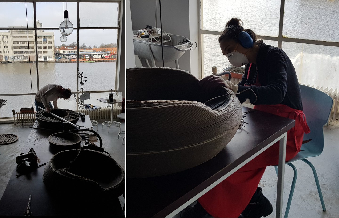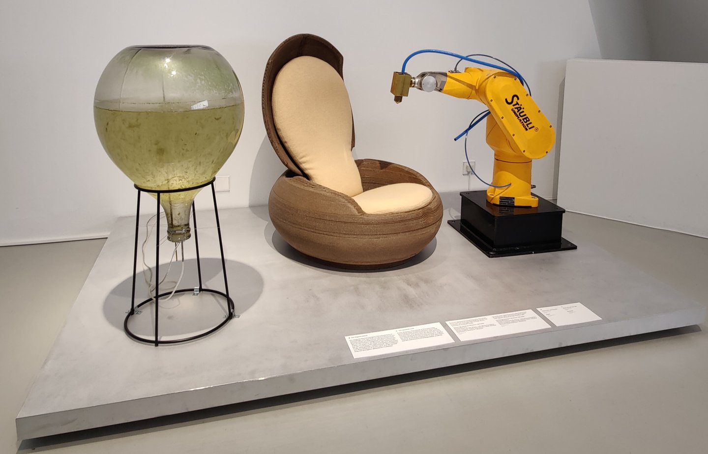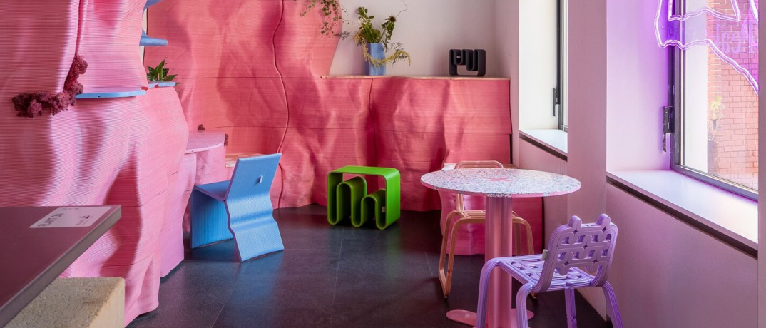 Хороший пример такой эстетики — мебель студии Eburet, напечатанная на крупноформатных 3D-принтерах из переработанного полистирола и ПВХ, собранных из остатков пищевой промышленности и старых надувных лодок.