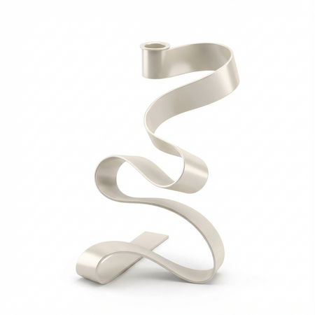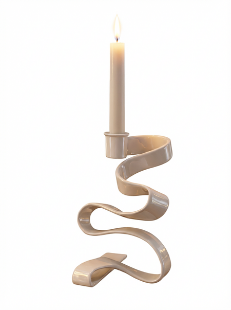 Форма каждого подсвечника напоминает декоративную ленту, которой так часто украшают подарки. Она будто бы только что скользнула по поверхности, сделала мягкий изгиб и застыла в самый красивый момент. В ней запечатлено ощущение лёгкости праздничного жеста.