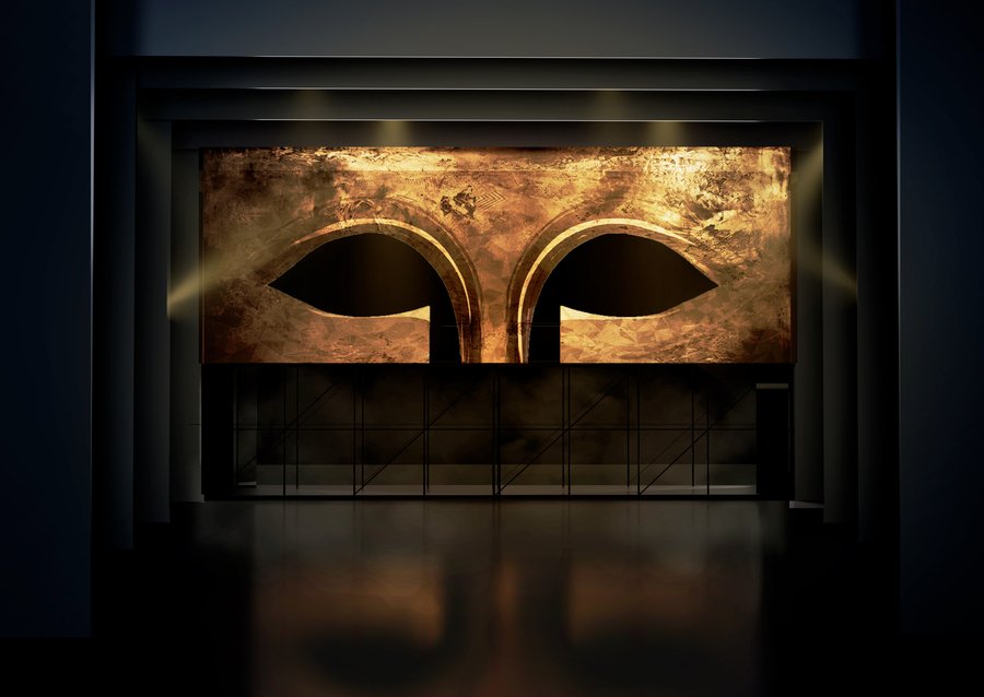 Визуальный мотив спектакля — архаичное золото, утратившее блеск, растрескавшееся и ветхое. Это символ величия, разрушенного временем и внутренней гнилью — как некогда великий, но обречённый род Атридов.