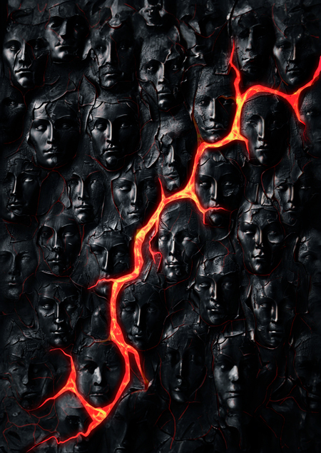 Костюмы спектакля «Орестея» вырастают из сценографии и продолжают образ разрушенного дворца Атридов. Главный визуальный мотив — трещина: в декорациях она разрывает золото ворот Агамемнона, в костюмах превращается в шрамы на телах людей. Персонажи выглядят как живые фрагменты древней архитектуры, несущие на себе память проклятия рода.