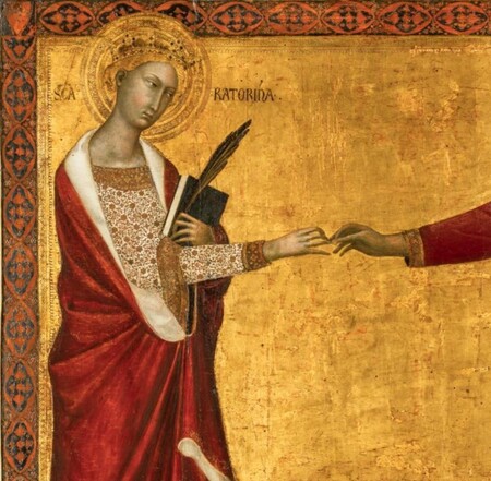 Барна да Сиена— Мистическое обручение Святой девы Екатерины Александрийской, 1340 Джованни ди Паоло — Мистический брак Святой Екатерины Сиенской, 1447