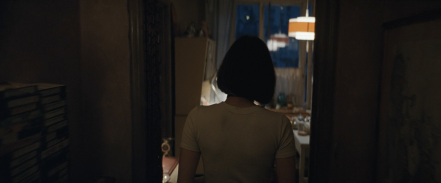 Отчужденность героини может передаваться через съемку со спины. Она отворачивается не только от окружающих, но и от зрителя. Она и в центре и невидима.