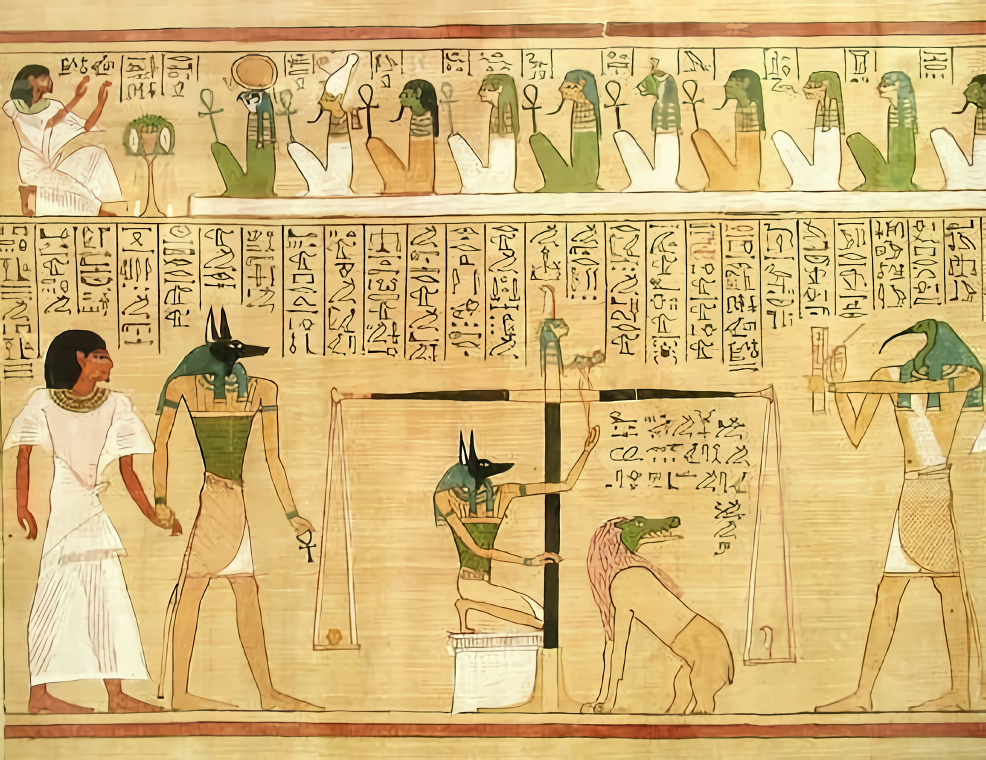 Папирус Хунефера, сцена «Взвешивание сердца». Около 1285 г. до н. э.