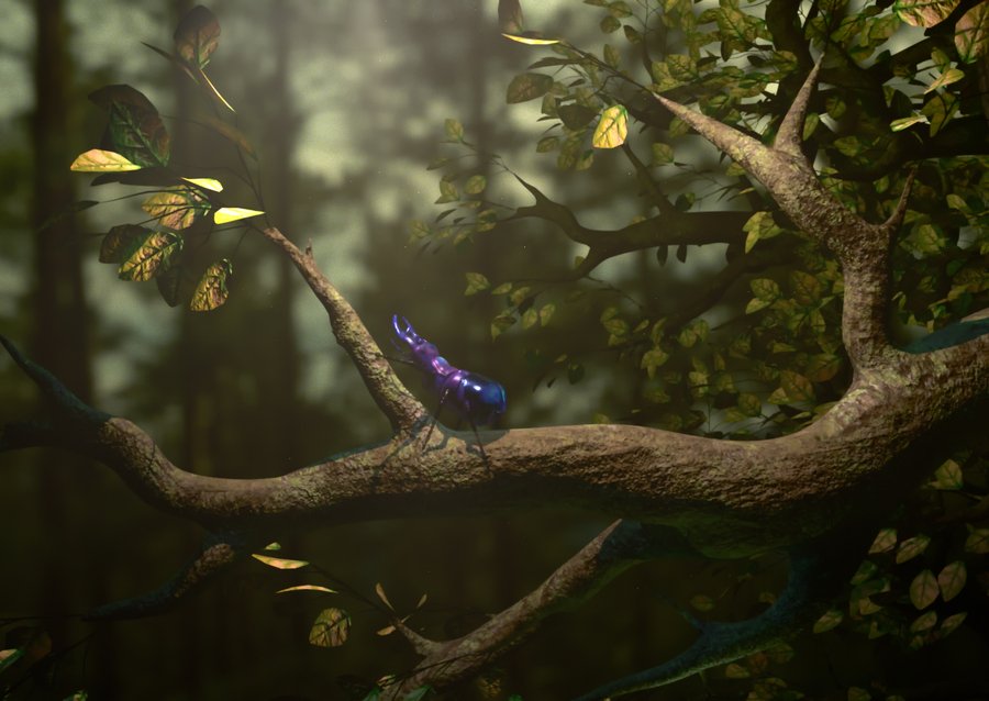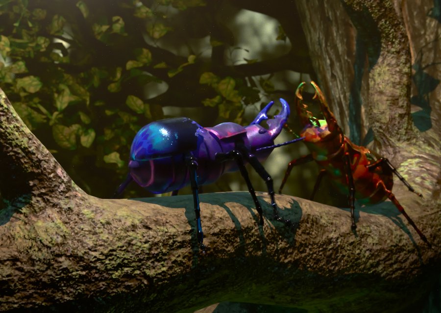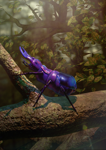 Проект выполнен в формате натуралистичной симуляции документальной съёмки, отражающей жизнь двух жуков-оленей. Визуальная часть создана с использованием разработанного ранее процедурного ассета; шейдинг сделан в Substance Painter, риг с помощью системы KineFX.
