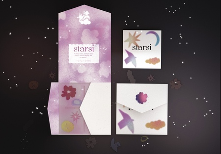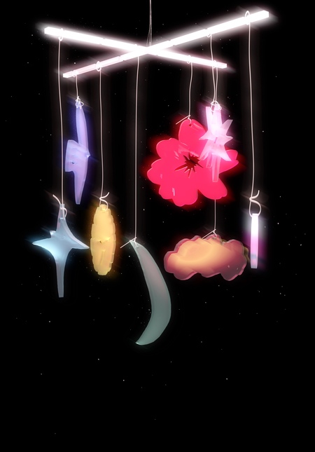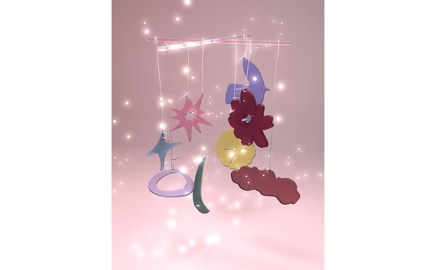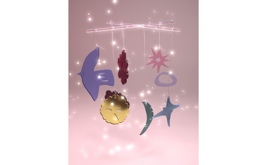 Игрушка состоит из веревочки и десяти элементов: квадратная форма, основание с прорезями, птичка, цветочек, камешек, облако, звезда, листочек, полумесяц и капелька. Все образы связаны с метафорой волшебной сказки и праздничного чуда.