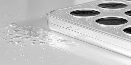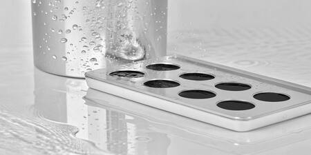 Promt: generate a sleek, modern beauty composition: a metallic eyeshadow palette lying on a glossy wet surface, with water droplets and splashes creating a fresh, cool, reflective atmosphere. High-detail macro style, silver tones, clean minimalistic aesthetic, soft diffused lighting, futuristic and refreshing mood