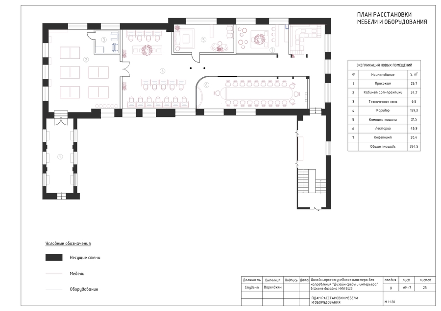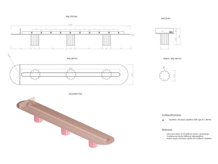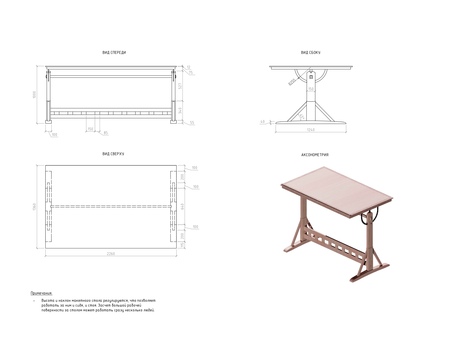 - Высота и наклон макетного стола регулируются, что позволяет работать за ним и сидя, и стоя. Засчет большой рабочей поверхности за столом может работать сразу несколько людей. - Стол рассчитан на 22 рабочих места с разеткойю. - Учительское место отделено перегородкой. - Ножка стула показана справа от основного чертежа.