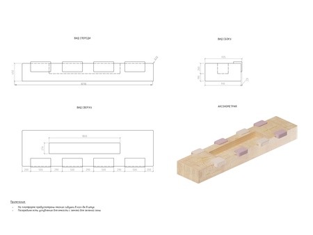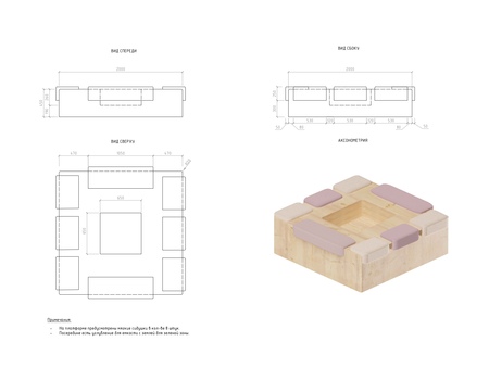 - На платформе предусмотрены мягкие сидушки в кол-ве 8 штук. - Посередине есть углубление для емкости с землей для зеленой зоны.