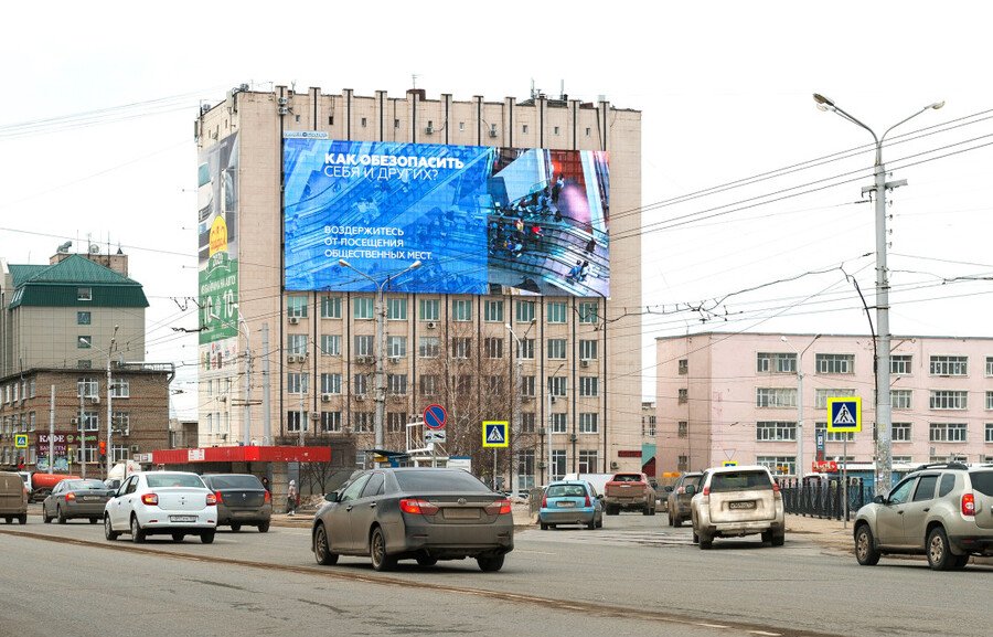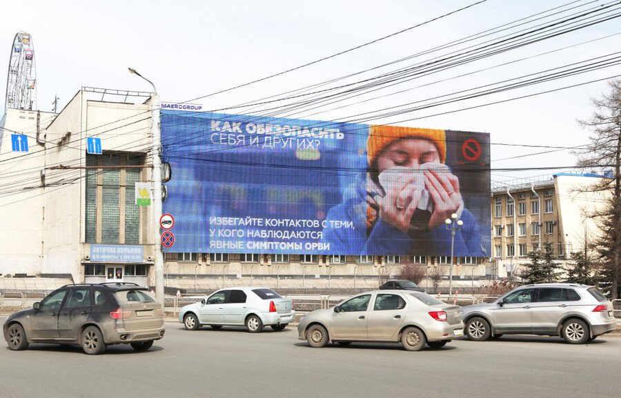 Наружная реклама стала одним из способов быстрой и массовой коммуникации во время пандемии. Федеральный оператор Maer Group транслировал на медиафасадах и цифровых суперсайтах информацию о профилактике COVID-19, правилах гигиены и горячих линиях помощи. Яркая типографика и стандартизированные визуальные приёмы обеспечивали простоту восприятия и нормативность сообщений, делая их легко узнаваемыми и понятными.